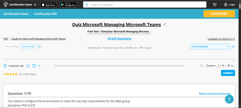 The MS-700 Exam is focused on the planning and managing of the Microsoft Teams platformThe Microsoft MS-700 – Managing Microsoft Teams Certification Exam is intended to test the knowledge of employees who have worked with Microsoft Teams or Skype for Business in the past, and as such, it is a good way for employees to demonstrate their ability to implement and manage Office 365 environments, specifically through using Microsoft Teams. The MS-700 Certification Exam will determine whether or not the person taking the test has all the skills necessary to be an effective Microsoft Teams administrator. The skills that will be tested during the exam include: