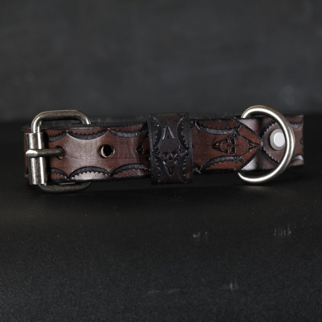 Blends style with practicality, providing personalized leather collars for active pets.